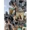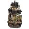 Imposant vase-sculpture chinois en céramique émaillée (XIX? siècle), formant un paysage de montagne avec pavillons, pagodes et personnages. La partie basse constitue un réservoir pouvant recevoir de l’eau, tandis que la partie haute est conçue pour accueillir bambous du bonheur, fleurs ou plantes aquatiques, dans l’esprit des compositions de lettrés.