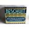Très grande boîte à biscuits en tôle, Beschuit, N.V. Paul C. Kaiser Rotterdam bon état sauf un coup sur le couvercle et manque de vernis sur une face, voir photos
