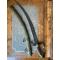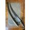 Lame courbe à un seul tranchant, de 47 cm de longueur et 3 cm de largeur, avec un long contre-tranchant avec des traces de décorations de feuilles et des marques de fabricant indescriptibles.