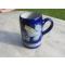 Ancienne grande chope a biére/Mug pichet en grès au sel sur fond bleu de cobalt d’Alsace, signé Schmitter.
