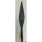 Belle lance à large fer forgé, à double tranchant et douille longue permettant l’emmanchement sur une hampe en bois dur (probablement iroko ou bois local similaire).