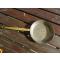 Poêle muni d'un long manche en laiton avec système d'accroche présent a l’extrémité et un fond martelé.