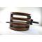 Grande poulie à trois roues, triple, navire / bateau, décoration marin. Bois et fer forgé 19e Siècle