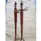 Grandes saquines originaires du Tchad. Etui et manche en peau de bête, lame en acier doux. Longueur totale 70 cm, longueur de la lame 50 cm, le tout en très bon état.