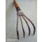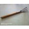 Gratte à coquillages, quatre dents acier, manche en chêne. Longueur totale 410mm.