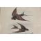 Gravure originale, rehaussée en couleurs à la main, extraite des livres OEuvres complètes de Buffon, édité par Garnier frères L'Hirondelle de cheminée, id à croupion blanc, L'Hirondelle de rivage dessinée par Edouard Traviès, gravée par Pardinel d'époque XIXe siècle bon état