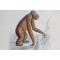 Gravure originale, rehaussée en couleurs à la main, extraite des livres OEuvres complètes de Buffon, édité par Garnier frères L'Orang-Outang dessinée par Edouard Traviès, gravée par Paquien d'époque XIXe siècle bon état