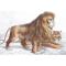 Gravure originale, rehaussée en couleurs à la main, extraite des livres OEuvres complètes de Buffon, édité par Garnier frères Le Lion dessinée par H. Gobin, gravée par Paquien d'époque XIXe siècle bon état