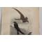 Gravure originale, rehaussée en couleurs à la main, extraite des livres OEuvres complètes de Buffon, édité par Garnier frères La Grand Martinet à ventre blanc, Le Martinet noir, L'Hrirondelle grise des rochers dessinée par Edouard Traviès, gravée par Pardinel d'époque XIXe siècle bon état