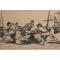 Gravure, eau-forte originale Fishermen Launching Their Boat par Frederick HALPERN (1909-?), artiste australien signée au crayon HALPERN Scène représentant trois pêcheurs luttant pour pousser et tirer leur bateau dans l'eau dimensions du dessin : 16 x 12 cm bon état