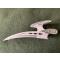 Griffes en acier inox sur support en médium peint. Le support est un peu abîmé et aura besoin d'être recollé au niveau des roues. ( se sont décollées avec le temps ) Les griffes quand à elles sont comme neuves. Longueur totale: 270mm