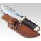 Gros Bowie Poignard Couteau de Chasse fixe - Longueur totale 30.7cm - Longueur de lame 18cm - Lame en acier 440C - Lame forgée puis polie pour aspect miroir - Epaisseur de lame 5.5mm - Garde et pommeau en laiton - Manche en rouleau de cuir - Etui en cuir customisé