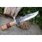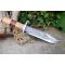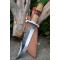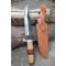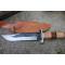 Gros Couteau De Trappeur Chasse Bowie Lame Acier Carbone 1075 Etui Cuir Manche Bois Fabr Artisanale