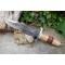 Couteau de Survie Bowie Chasse à lame fixe - Longueur totale 33.5cm - Longueur de lame 20.5cm - Longueur du tranchant 18cm - Lame en acier carbone 1075 - Lame type clip point plain edge finition brut de forge - Garde et pommeau en acier - Manche en bois - Etui cuir - Fabrication Artisanale - Couteau polyvalent : buschraft, cuisine, chasse