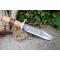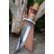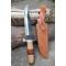 Gros Couteau De Trappeur Chasse Bowie Lame Acier Carbone 1075 Etui Cuir Manche Bois Fabr Artisanale