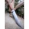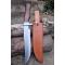 Gros Poignard de Chasse Survie Lame Acier Carbone 1055 Manche Bois Garde Acier Etui Cuir Fabric Artisanale