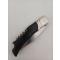 On ne peut pas dire qu'il soit léger mais il ne se fait pas sentir en poche(si tant est qu'on ait encore le droit d'avoir un couteau en poche).Son allure générale le démarque de ce qui se fait actuellement la mitre de tête en acier poli et le bois teinté bleu foncé ne sont pas étrangers évidemment à cet aspect. Les ajustages de platine ressort n'appellent aucun reproche .La lame se situe pile poil au milieu de son logement ce qui n'est pas toujours le cas et il coupe :à ce sujet la remarque précédente peut aussi s'appliquer .Donc il est parfait sauf que l'on ne peut pas l'ouvrir sans se casser les ongles ou se couper tellement le ressort est dur ;rien n'y fait même les gouttes d'huile.