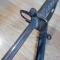 Cravate cuir présente, lame droite de 85 cm sans marquage.