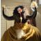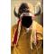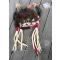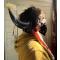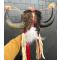Coiffe en peau et cornes de bison très impressionnante. Les cornes proviennent d un très gros mâle. Calote en peau de bison tannée à la cervelle comme le fesait les indiens. Bandeau perlé en seedbeads anciennes, grelots et diverses décorations. Très belle patine pour cette coiffe qui a une cinquantaine d années.grande taille