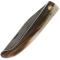 Longueur totale (mm) : 200 Longueur de la lame (mm) : 90 Largeur de la lame (mm) : 21 Épaisseur de la lame (mm) : 2.5 Matériau de la lame : Damas carbone Matériau du manche : Corne blonde Système : 2 Clous à friction Poids (g.) : 50 Pays d'origine : France