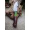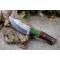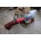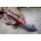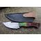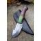 Couteau Crochet à lame fixe - Longueur du manche 11cm - Longueur de la lame 8cm - Lame en Acier damas 256 couches - Lame de type guthook crochet - Construction d'une seule pièce - Full tang - Plaquettes du Manche en bois de rose & cocobolo - Fabrication Artisanale - Les dessins de la lame sont uniques comme une empreinte - Etui cuir - Fabrication artisanale