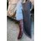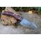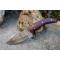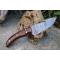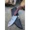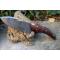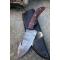 Couteau Crochet à lame fixe - Longueur du manche 10cm - Longueur de la lame 10cm - Lame en Acier damas 256 couches - Lame de type guthook crochet - Construction d'une seule pièce - Full tang - Plaquettes du Manche en bois - Fabrication Artisanale - Les dessins de la lame sont uniques comme une empreinte - Etui cuir - Fabrication artisanale
