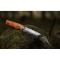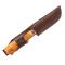 Couteau utilitaire scandinave assimilé comme un couteau de chasse. Lame lisse et satinée en acier H3LS (acier inoxydable triple laminé).