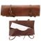 Pochette en cuir marron et lanières fait main, logo Helle gravé.