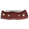 Logo Helle Norway gravé sur la lame. Un manche ergonomique en bois de bouleau teinté rouge, muni d'un clip de ceinture ainsi que d'un trou à l'arrière du manche pour le passage d'une dragonne.