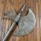 TABAR PERSE CÉRÉMONIEL ENTIÈREMENT EN FER 66 cm et entièrement gravé de volupte, feuillage et motif floraux. FER DE HACHE EN CROISSANT ET PIQUE D'ESTOC.