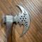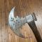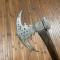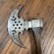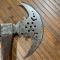 BEAU TABAR OTTOMAN ? fer symétrique demi lune à découpe géométrique à jour festonné au dos des crocs. L'arrière du fer est en marteau rectangulaire, Manche bois rectangulaire à pans, fêle.