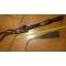 Hachette tribale (Afrique) manche en bois noirci gainé de peau , lame en fer et cuivre gravée .