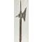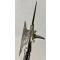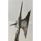 De grande qualité, son épaisseur dépasse 10 millimètres par endroits. Elle porte une marque à la base de la pointe supérieure, datée de 1512, ainsi que des initiales. Un certificat d'authenticité, délivré en 1990 par un antiquaire réputé, est fourni. La lame présente un décor ajouré remarquable, avec une croix centrale et dix ouvertures formant une figure géométrique circulaire. On notera également son éperon arrière épais et pointu, ainsi que la grande qualité de sa finition. Deux longues nervures la fixent au manche, partiellement intact et présentant une cassure à l'extrémité de ces nervures. Deux grandes agrafes, vestiges d'une ancienne réparation, sont visibles sur les côtés. La réparation a bien résisté à la rupture du manche quelques centimètres plus bas. Longueur totale : 87,5 cm ; largeur maximale : 22 cm. Forgée et martelée d'une seule pièce.