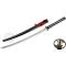 Son fourreau ou saya est en bois noir, avec cordelette d'attache (sageo) rouge.