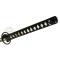 Sa garde ou tsuba, est en métal noir, ronde, très ajourée, en motifs de virgules.