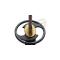 Sa poignée ou tsuka est en bois recouvert de peau de raie synthétique blanche, avec un menuki (décoration) plaqué or, et recouverte d'un tressage (ito) en cuir synthétique noir.