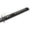 Sa poignée ou tsuka est en peau de raie synthétique (blanche), avec une décoration de fleurs cuivrée (menuki), et recouverte d'un tressage (ito) en coton noir.