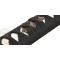 Sa garde ou tsuba, est simple, en métal noir, de forme ronde, avec 2 trous (qui permettaient historiquement d'y ranger une réplique de lame plus petite, et une paire de pointes)