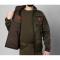 Cette luxueuse veste possède une finition en maille la rendant très silencieuse. Réversible, elle présente un côté au motif camouflage vert foncé et un côté marron uni. Le coté camouflage est doté d’une poche radio et deux poches avant.