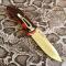 Le manche en G10, dans une finition rouge et noire, offre une prise en main solide, même en conditions difficiles. Sa texture travaillée renforce le grip, même avec des gants ou sous la pluie.