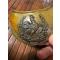 Plateau en cuivre, motif central estampé en relief et découpé en forme d'un Coq Gaulois entouré de deux branches de laurier.