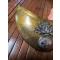 Plateau en laiton doré beau reste de dorire décoré en son centre d'une bombe enflammée, dite grenade, en Argent estampé, agrafée au plateau.
