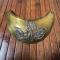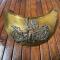 Plateau en laiton doré décoré en son centre d'un motif en cuivre argenté agrafé au plateau. Motif représentent le Coq Gaulois tenant dans ses serres le globe terrestre frappé de l'inscription «FRANCE» et posé sur un faisceau de quatre drapeaux portant l'inscription «LIBERTÉ ORDRE PUBLIC» . Les drapeaux sont liés par une couronne de laurier.