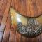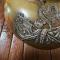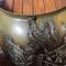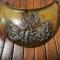 Plateau en laiton doré décoré en son centre d'un motif en cuivre argenté agrafé au plateau. Motif représentent le Coq Gaulois tenant dans ses serres le globe terrestre frappé de l'inscription «FRANCE» et posé sur un faisceau de quatre drapeaux portant l'inscription «LIBERTÉ ORDRE PUBLIC» . Les drapeaux sont liés par une couronne de laurier.