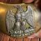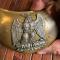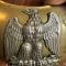 Plateau en laiton doré , motif central en Argent estampé de l'aigle impériale , tenant un foudre dans ses serres .