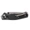 Herbertz propose un couteau robuste à une main. Grâce à l'axe de la lame sur roulement à billes, la lame usinée CNC en acier inoxydable AISI 440C avec revêtement titane peut être facilement mise en position de travail à l'aide de boutons-pouces des deux côtés. Un verrou Axis-Lock garantit que la lame est solidement verrouillée. La structure de surface fraisée CNC des écailles du manche en G10 noir avec inserts inox, les rainures prononcées pour les doigts et la rampe de pouce fraisée à l'arrière de la lame et du manche assurent une position sûre de la main.