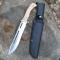 Lame forme Drop point fixe fabriquée en acier inoxydable AISI 420 haute performance et finition satinée. Une épaisseur de lame de 3,8 cm, couteau robuste et imposant. Look particulier avec ses encoches et les ouvertures à l'arrière de la lame.