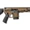 Le upper lui-aussi Brown Cerakote fonctionne par emprunt de gaz et bénéficie d’un canon au pas de rayure de 1/9 d’une longueur de 11.5 pouces. Complété par un compensateur HERA ARMS LCS de 75 mm et 181 grammes permettant de dissiper l’effet de blast. Ce dernier est doté d’un garde main bénéficiant d’un rail picatinny sur le dessus et M-lock sur l’ensemble des faces permettant d’adjoindre tous types d’équipements supplémentaires.