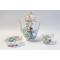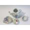 Service à café tête à tête en porcelaine de Herend, Hongrie comprenant un plateau, deux tasses avec leur sous-tasses, un sucrier, un pot à crème et une cafetière (hauteur : 16 cm) diamètre tasse au buvant : 7,5 cm diamètre sous tasse : 11 cm très bon état