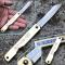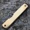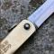 Longueur fermé 8,89cm. Longueur de lame 5.08cm. Lame traditionnelle Japonaise en acier Blue Paper. Manche en laiton. Ouverture de la lame avec le pouce. Trou dans le manche pour dragonne. Slip joint. Pochette cuir. Made In Japan.